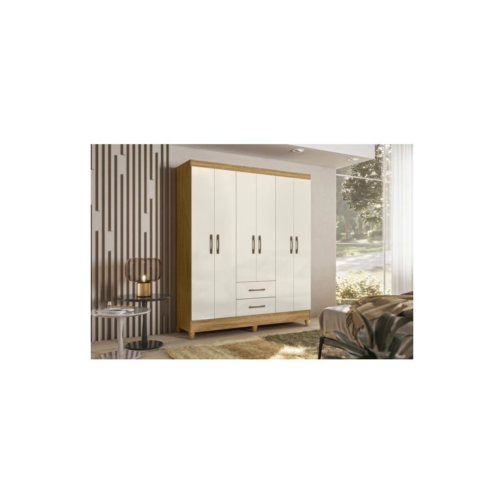 Se você procura um produto qualidade e bom preço na hora de escolher um guarda roupa, o Guarda Roupa Panamá é perfeito, com 6 portas e 2 gavetas! Modernidade e funcionalidade são adjetivos que descrevem perfeitamente este Guarda Roupa. Características Técnicas : Corrediça metálica Portas e frente de gaveta de 15 mm Bastão em madeira reflorestado revestido Pés em PVC Puxadores na cor bronze Impressão UV